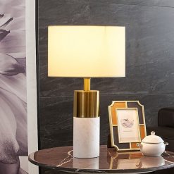 - Chất liệu: Thân bằng hợp kim cao cấp + Chao đèn bằng vải + Đế bằng đá cẩm thạch