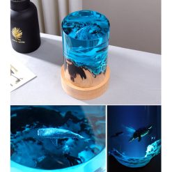 Đèn trang trí bằng gỗ kết hợp Epoxy hình trụ mô phỏng đại dương, thủy thủ và rùa biển