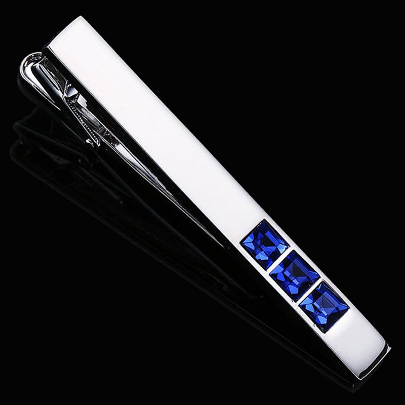 Kẹp Cà Vạt Cao Cấp Màu Bạc Đính Đá Xanh Blue Hiện Đại