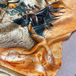 Khăn lụa cao cấp màu cam họa tiết hoa hướng dương làm quà tặng bạn gái, sếp nữ, mẹ, cô, dì, chị – em gái…