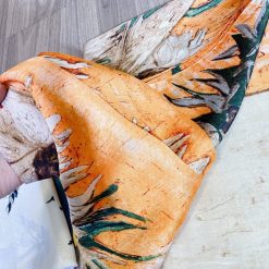 Khăn lụa cao cấp màu cam họa tiết hoa hướng dương