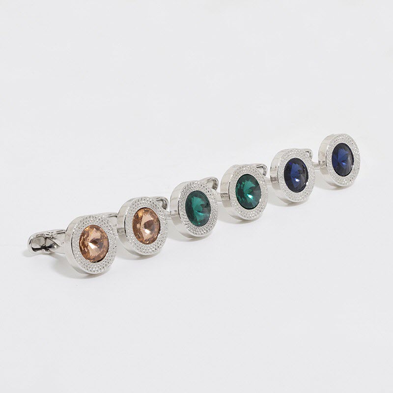 Khuy măng set mặt tròn màu bạc đính đá xanh ngọc bích cao cấp