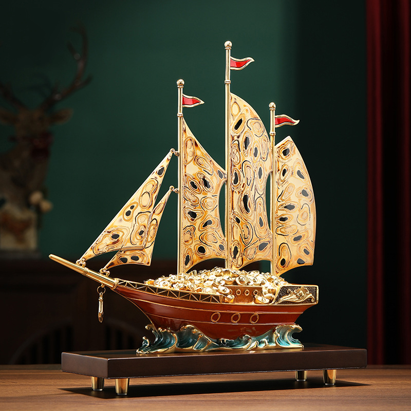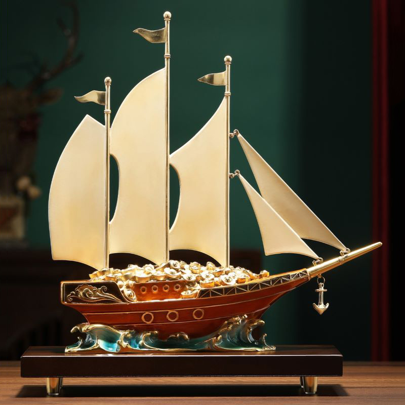 Trong phong thủy Á Đông, mô hình thuyền buồm luôn gắn liền với thông điệp “Thuận buồm xuôi gió” – tượng trưng cho hành trình hanh thông, vượt sóng lớn và đạt đến thành công. TB09 nâng tầm biểu tượng ấy nhờ vào ngôn ngữ thiết kế đậm chất nghệ thuật, sắc vàng thịnh vượng và hình tượng thuyền đầy vàng bạc – tất cả hợp thành một món quà vừa có chiều sâu phong thủy, vừa đầy tính biểu tượng cho thành công bền vững.
