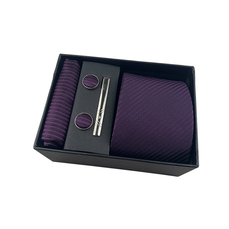 Set Combo cà vạt nam 4 món cao cấp WD-CVN09 bao gồm: 01 Cà vạt + 01 Khuy măng set + 01 Kẹp và vạt + 01 Khăn bỏ túi áo vest được hoàn thiện tỉ mỉ từng đường kim mũi chỉ và đóng gói trong một hộp đựng sang trọng kèm 1 túi xách rất thích hợp làm quà tặng hoặc sử dụng hàng ngày.